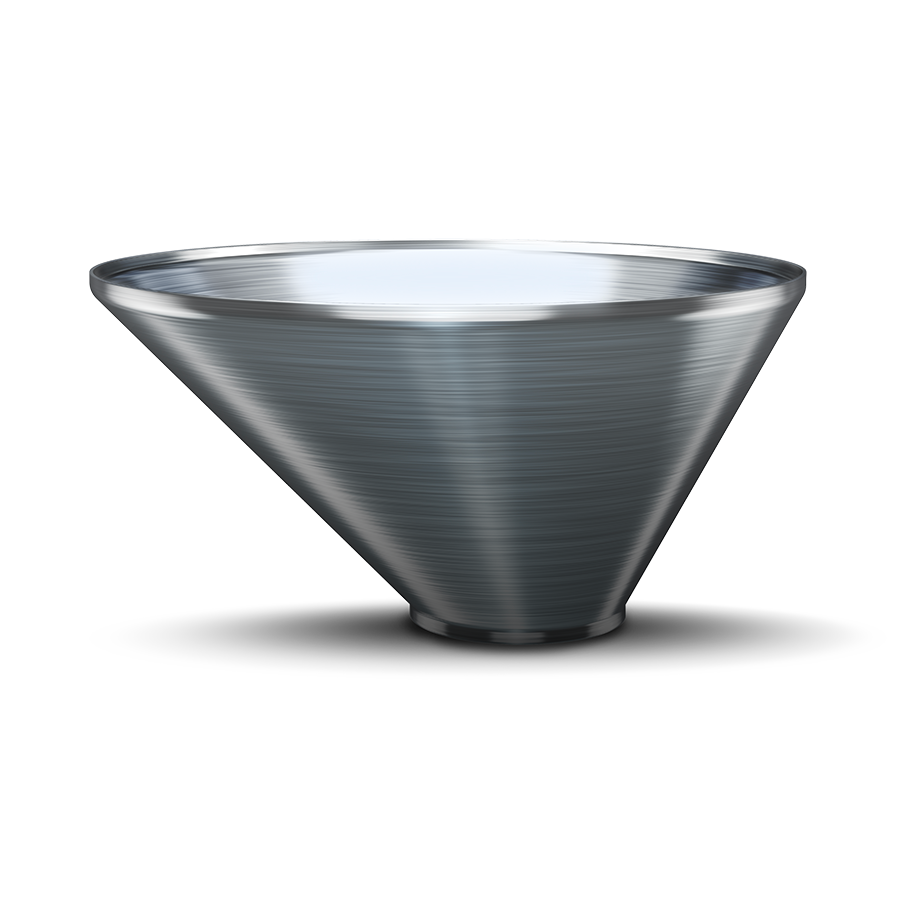 Riduzione concentrica in acciaio inox, di spessore massimo 20 mm, realizzata per formatura a freddo.